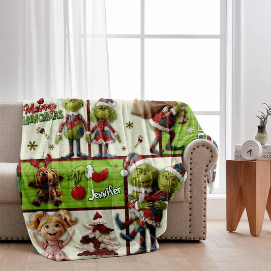 Green Grinchy Christmas - Personalized 3D Inflated Effect Blanket