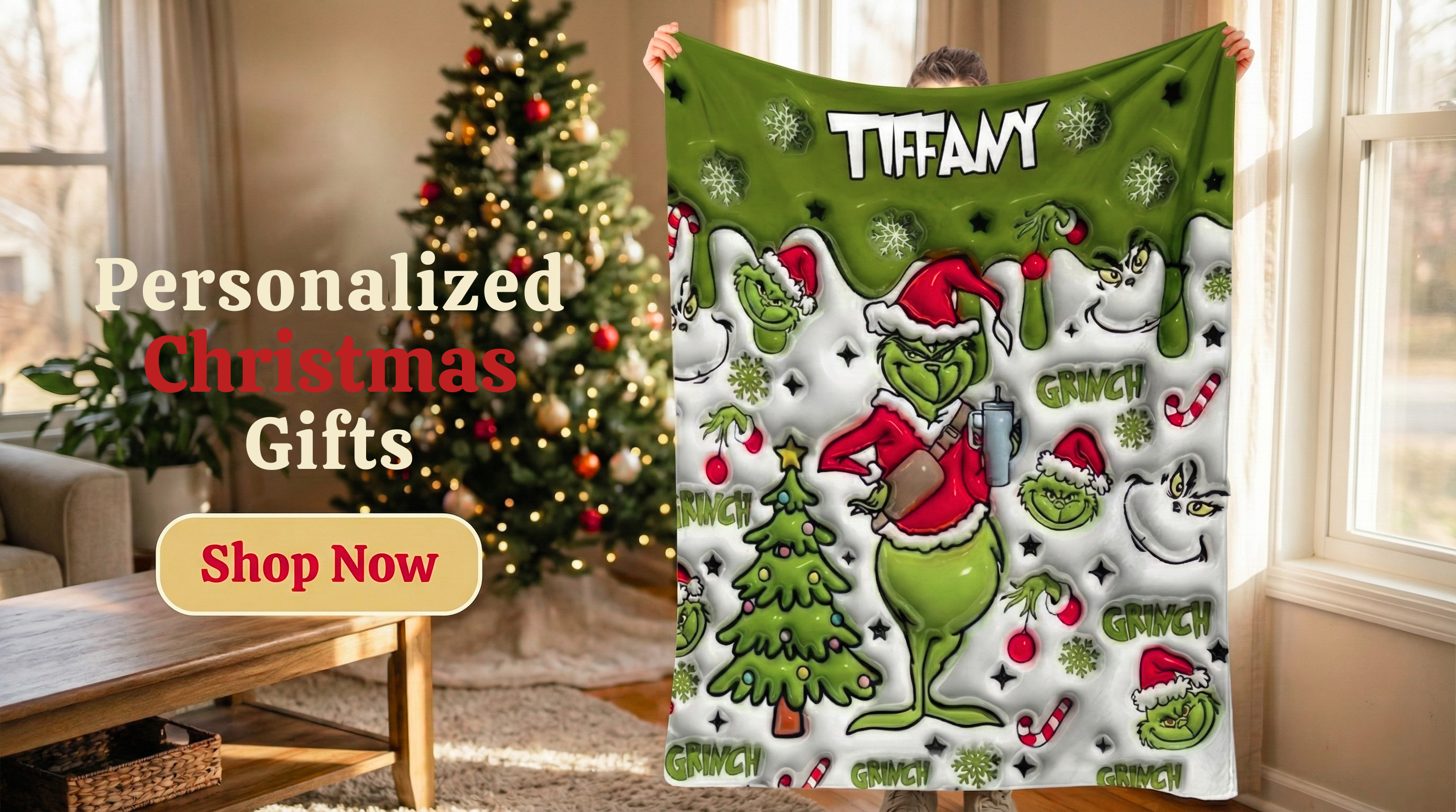 Green Grinchy Christmas - Personalized 3D Inflated Effect Blanket